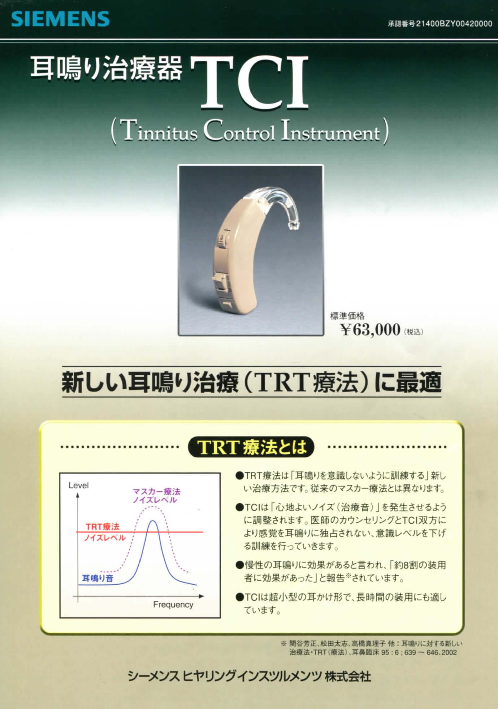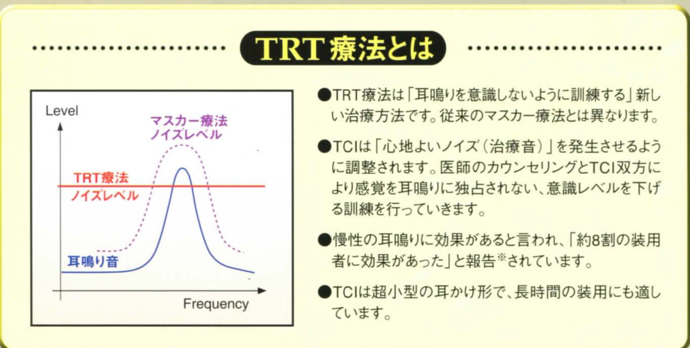 《 コメント 耳鳴に対するTRT療法は従来の治療法の概念を変える方法で適応が正しければ75%の改善率はたしかですので耳鳴りの方はご相談下さい(私ははじめ30%の効果があればとおもっておりましたが)、TCIその物は一見高価と思っておりましたがTCI治療中は殆どの人は薬は服用は必要ではなく月に1〜2度の通院ですので結果的には安いと思います。》